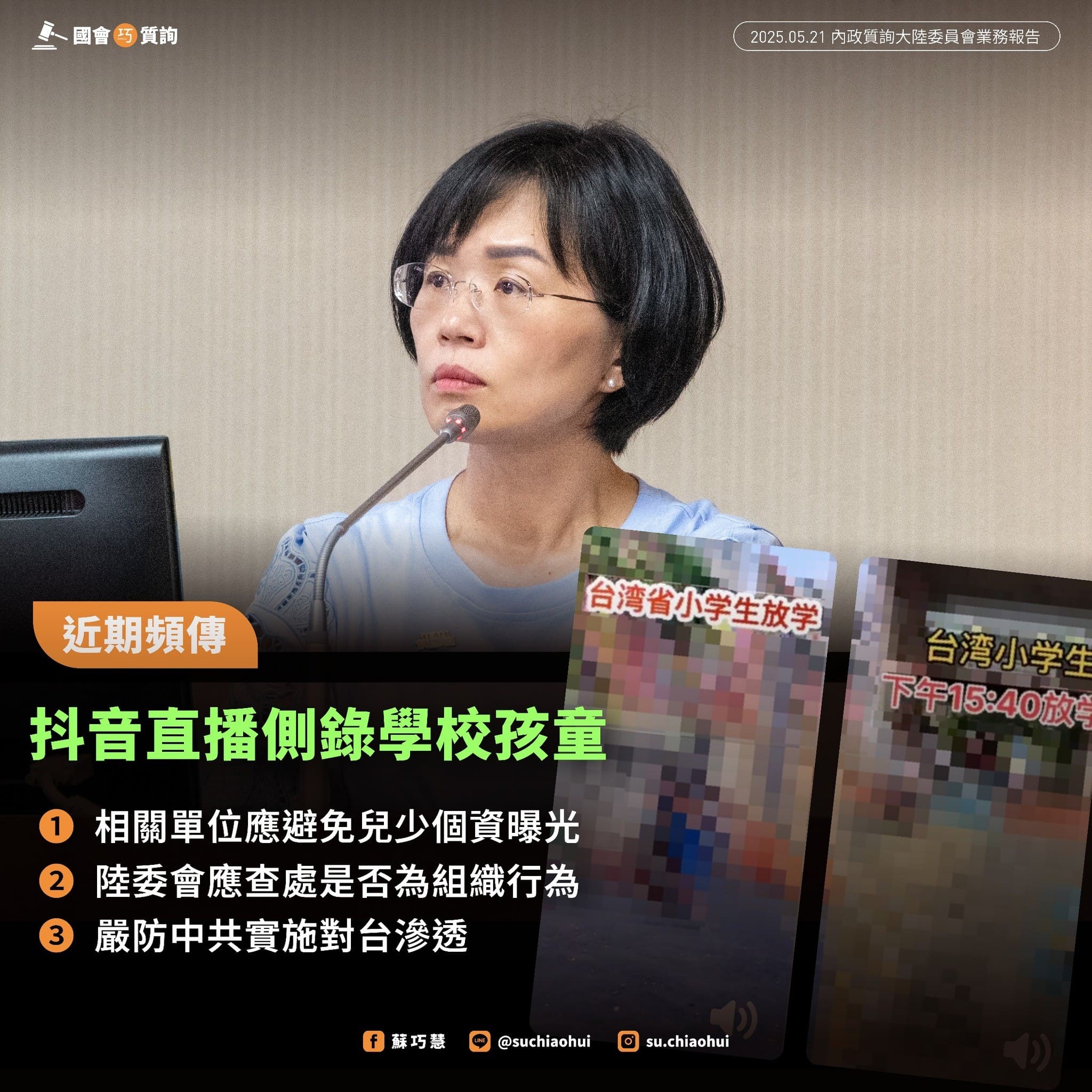 抖音直播跟拍小學生 要求陸委會應查處並宣導