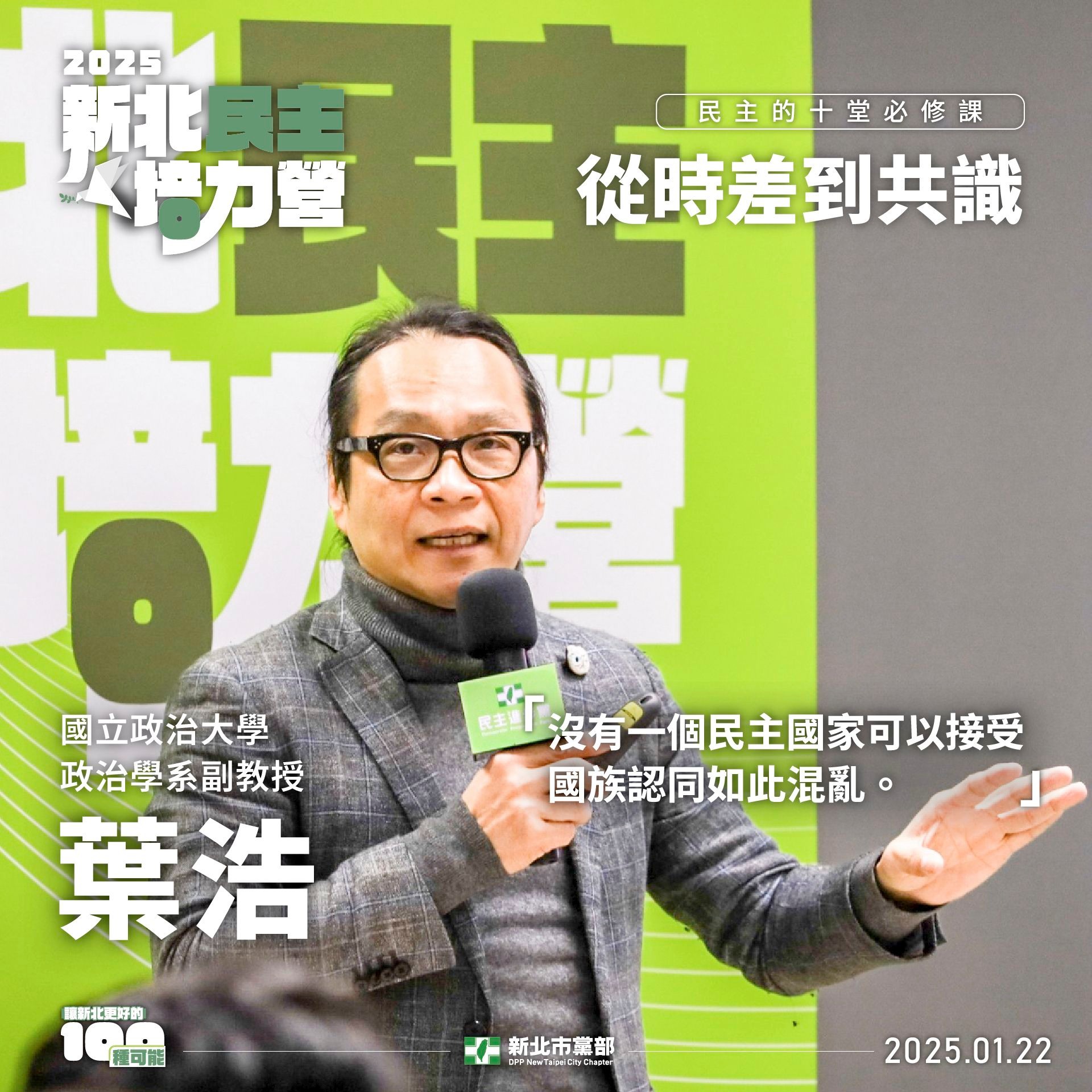 4️⃣ 政治大學政治系副教授葉浩:教授從政治哲學角度切入,講述台灣民主進程,並強調針對近期台灣民主所遭遇的問題,不能流於口號,鼓勵大家應積極建立論述並實際行動。