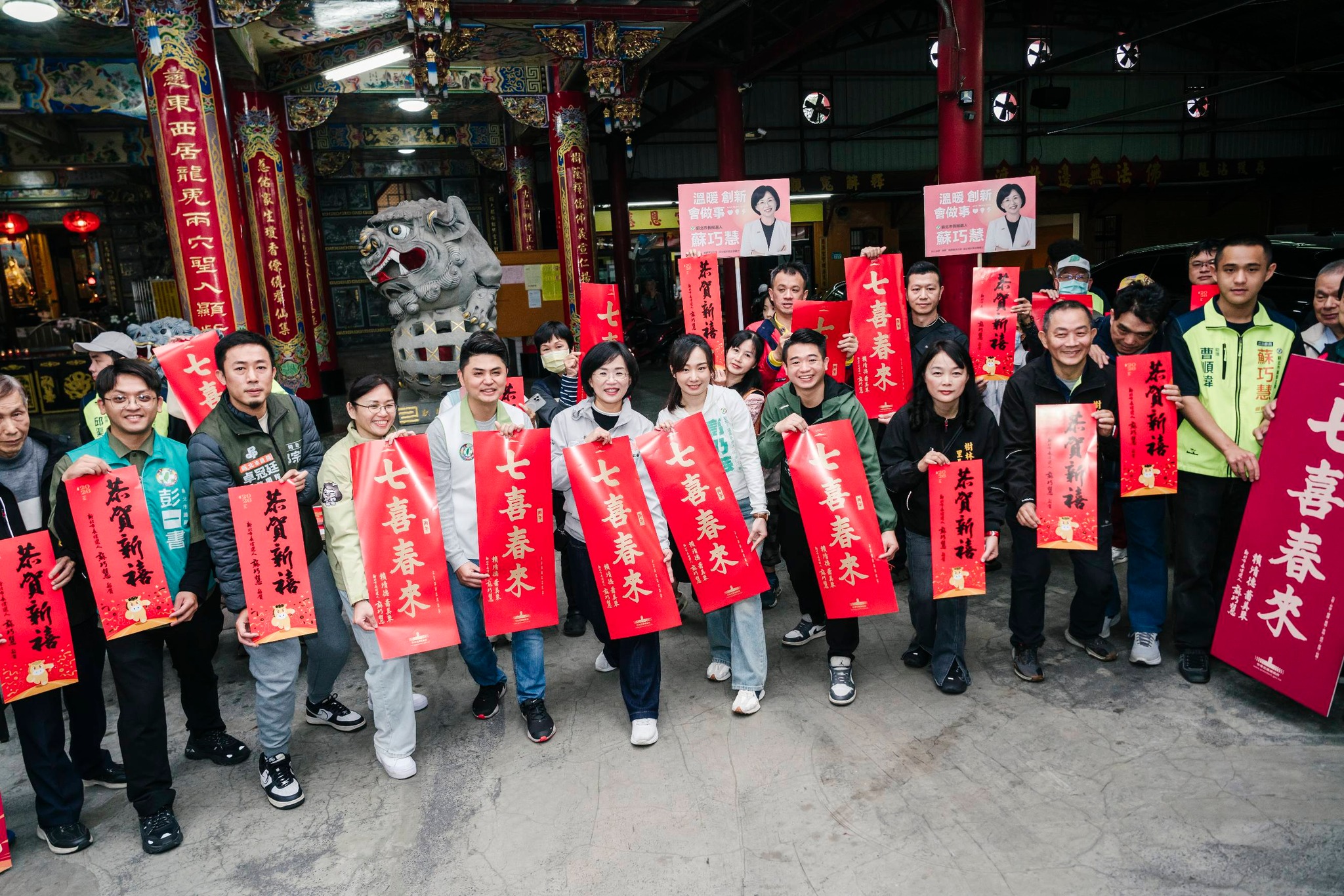 今天我來到樹林慈恩宮發放全台灣第一張 總統聯名春聯給最熱情的樹林鄉親們