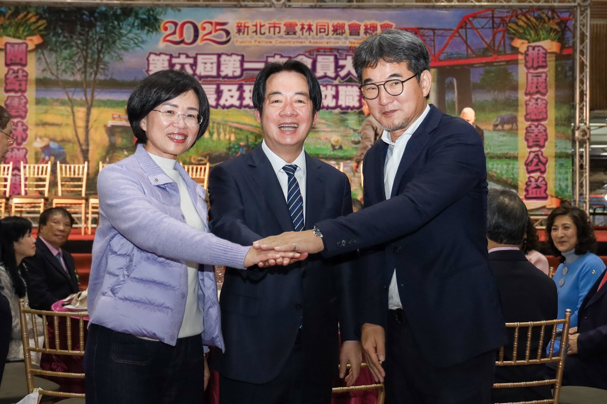 今天陪同賴清德總統一起參加新北雲林同鄉會會員大會,也很榮幸再次獲得賴總統向各位雲林同鄉推薦巧慧、還有雲林縣長候選人劉建國!