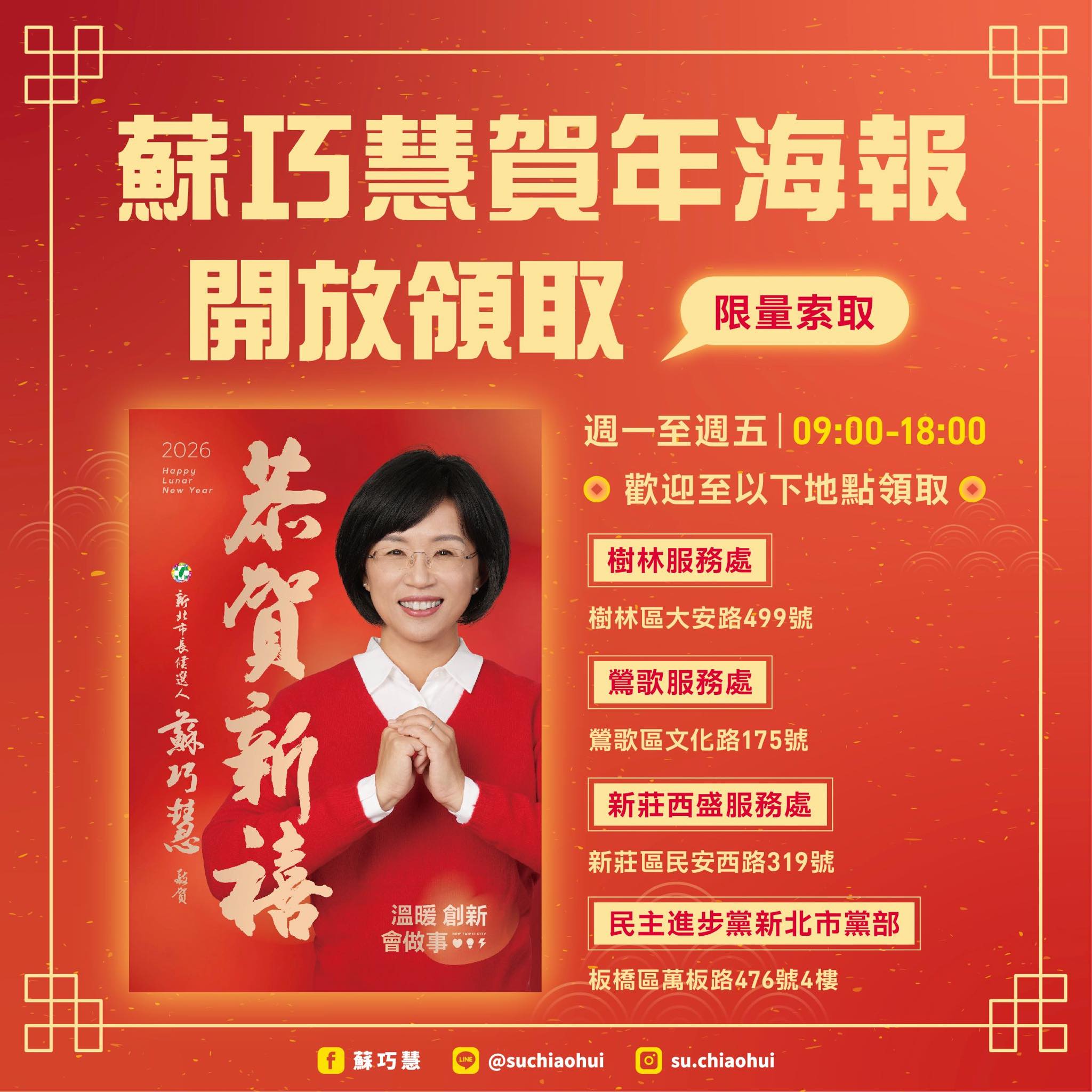 巧慧賀年海報來囉!新春好運馬上到!除了每年詢問度超高的生肖春聯,今年巧慧一樣提供精美的賀年海報要送給大家!不管貼在玄關,還是店面都超喜氣!數量有限,送完為止!歡迎提前來電詢問!