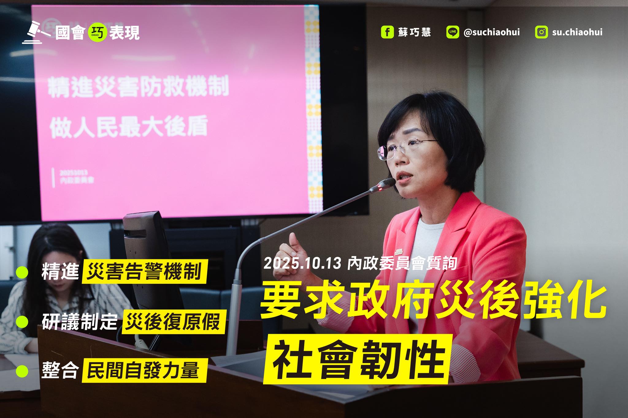 2. 呼籲政府研議制定災後復原假,幫助民眾更快恢復家園。