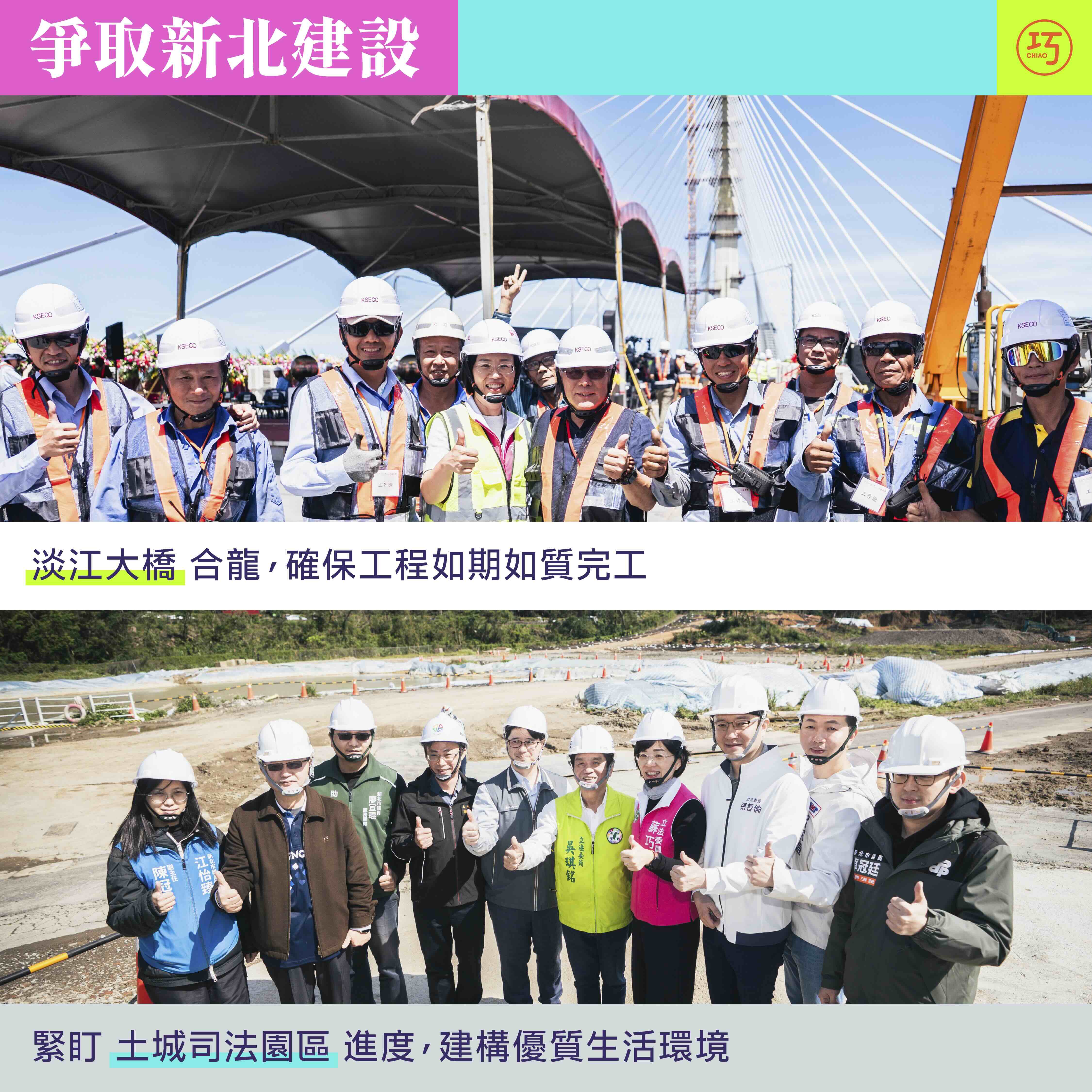 淡江大橋是新北市相當重要的交通建設,建設完成後將打通淡水河出海口左右岸的動線,帶動台北港、淡水、八里的地方發展。我因此出席立法院的正式考察,以及淡江大橋的合龍典禮,不僅追蹤淡江大橋的建設進度,要求相關單位要規劃好大橋啟用後的相關交通配套措施,也與地方鄉親一同分享大橋即將完工的喜悅。