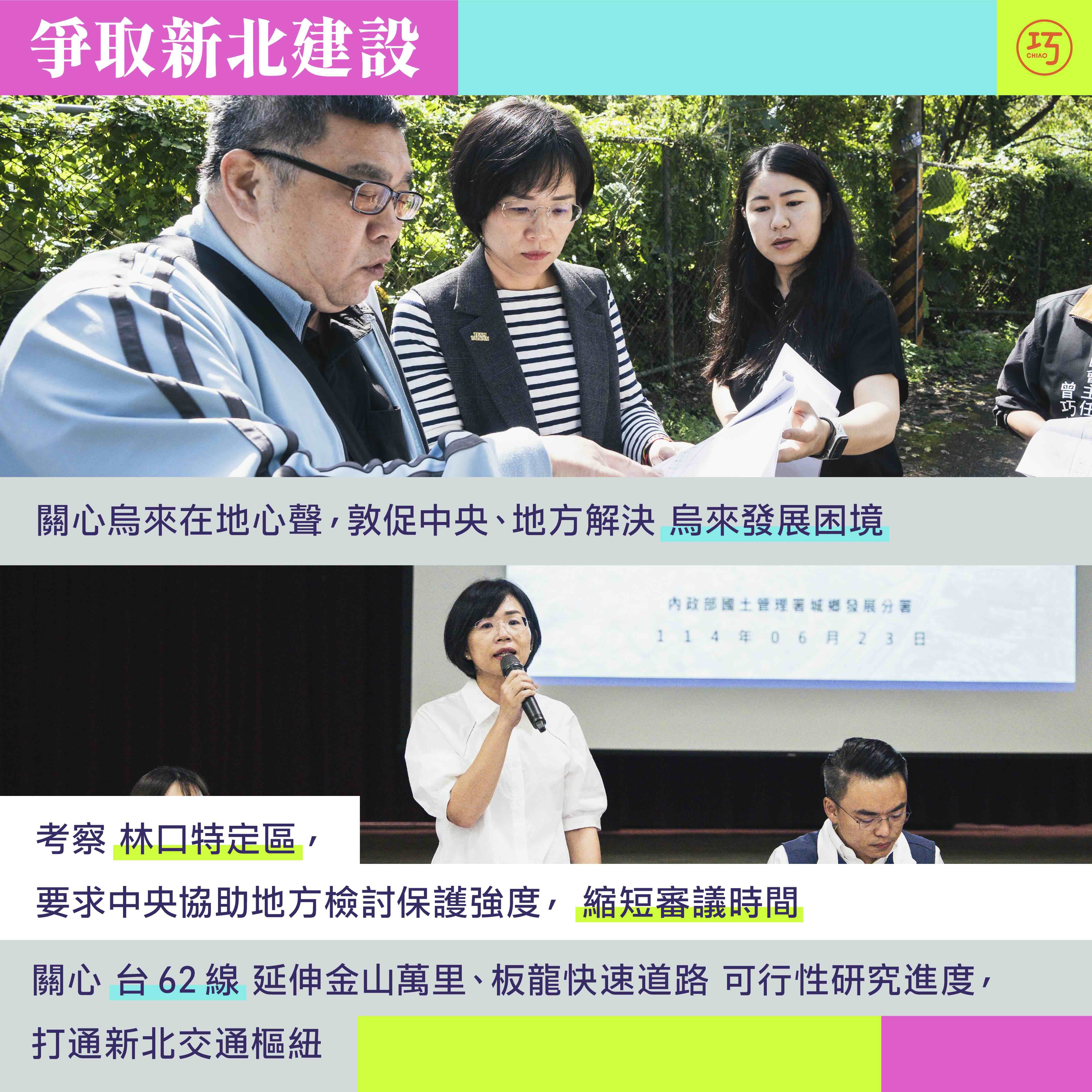 金山、萬里長期缺乏快速道路連接,鄉親們飽受塞車之苦。而土樹三鶯也因為沿線交通趨於飽和,也亟需新的交通建設來打通任督二脈。我因此持續關心台62線延伸金山萬里以及板龍快可行性研究的進度,希望這些建設能盡速核定興建,解決新北鄉親的交通問題。