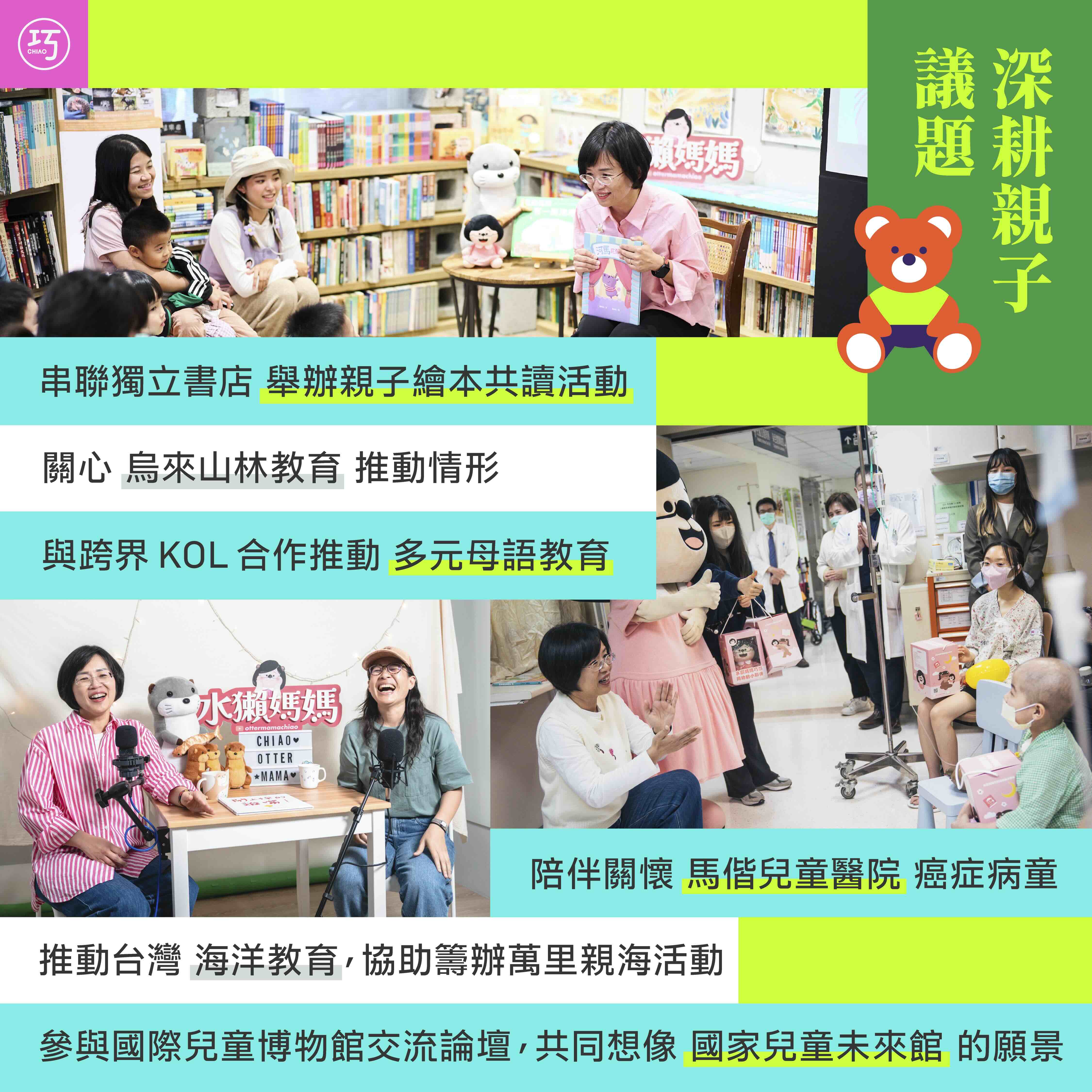 過去五年來,《水獺媽媽巧巧話》致力於用豐富的故事陪伴孩子成長、用有趣的內容創造更棒的母語學習環境。今年八月,我們來到永和綠書店,首次舉辦水獺媽媽線下實體活動。現場的大朋友小朋友一下組成即興樂隊,一下從繪本裡挖掘生態議題,一下又用台語合唱生日快樂歌,大家的笑聲此起彼落不停止!感謝大家過去五年來對《水獺媽媽巧巧話》的支持,未來我也會繼續用說故事陪伴孩子成長,成為家長的最強隊友!