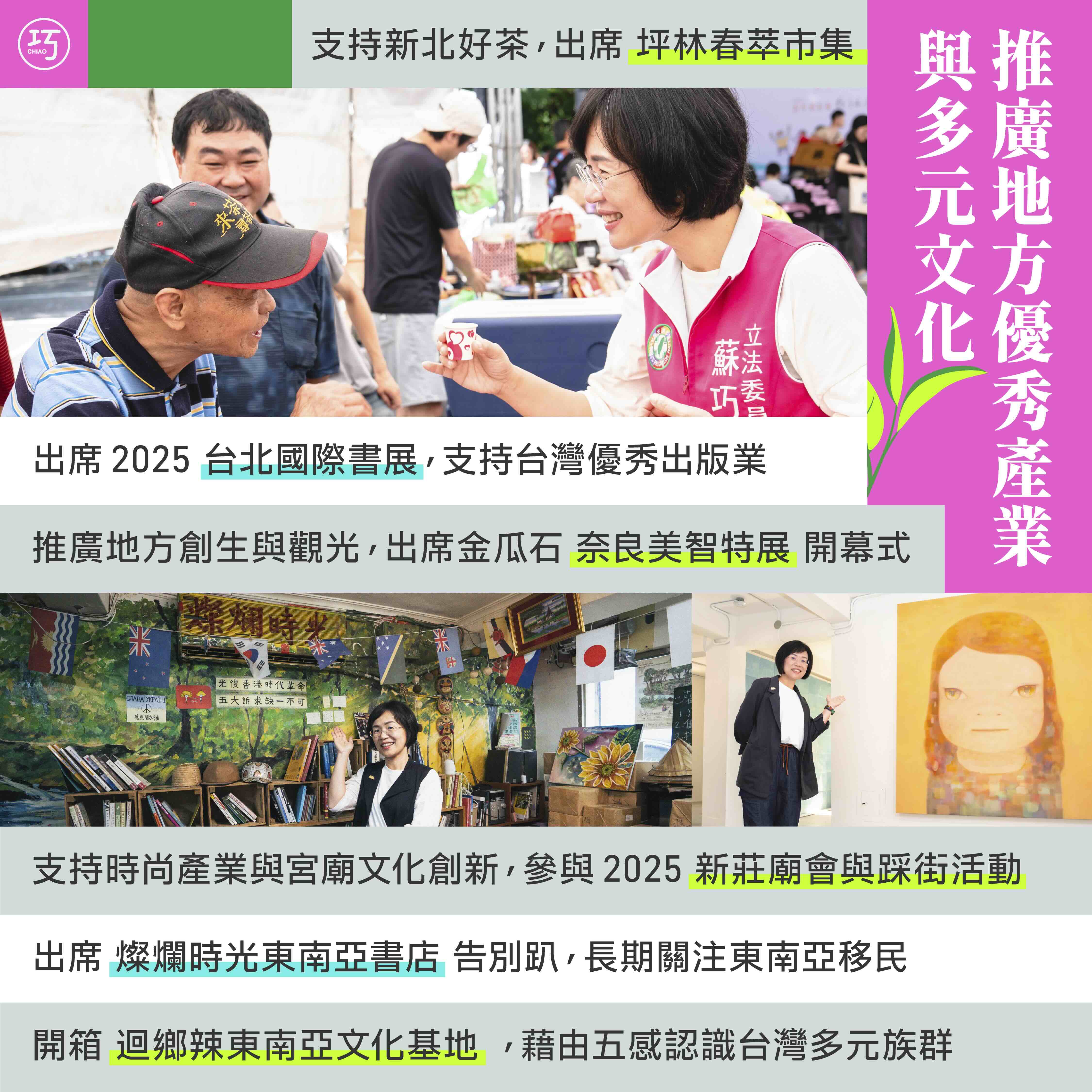 我每一年都一定會到台北國際書展支持台灣的出版業,雖然對出版社跟作品已經倒背如流,但每次來還是能發現驚喜。身為台漫的重度讀者,超多優秀作品也都已經收藏在我的書架上,除了用行動力支持台灣優秀的出版業外,未來我也會繼續在政策上為出版業創造更友善的發展環境!