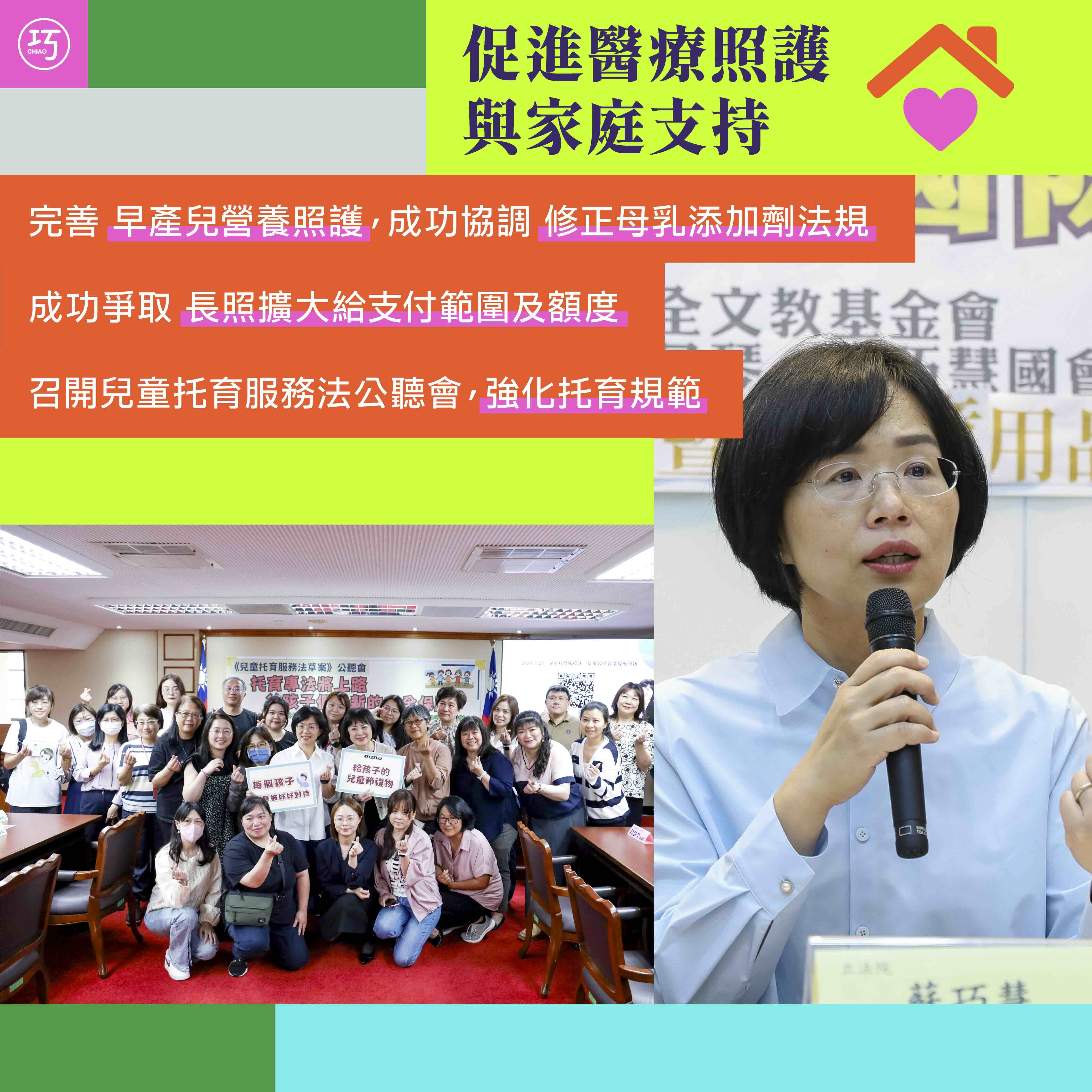 我是早產兒媽媽,我深知照顧早產兒的辛苦,包括要自費使用多項藥物來治療併發症,也需要額外營養品來增加營養與熱量,其中就包括母乳添加劑。然而,經早產兒基金會、台灣新生兒科醫學會在2025年4月初向我反映,我國現行母乳添加劑之規定較日本、歐洲等國更為限縮,可進口之品項及數量較少,已無法完全滿足早產兒嬰兒的需求。經過我辦公室的研究並發函提出「食品添加物使用範圍及限量暨規格標準」法規相關建議後,感謝衛生福利部食品藥物管理署能快速反應,於2025年5月7日完成法規修正,未來有更多業者可依規定申請進口,讓早產兒有機會取得更多元的母乳添加劑產品。