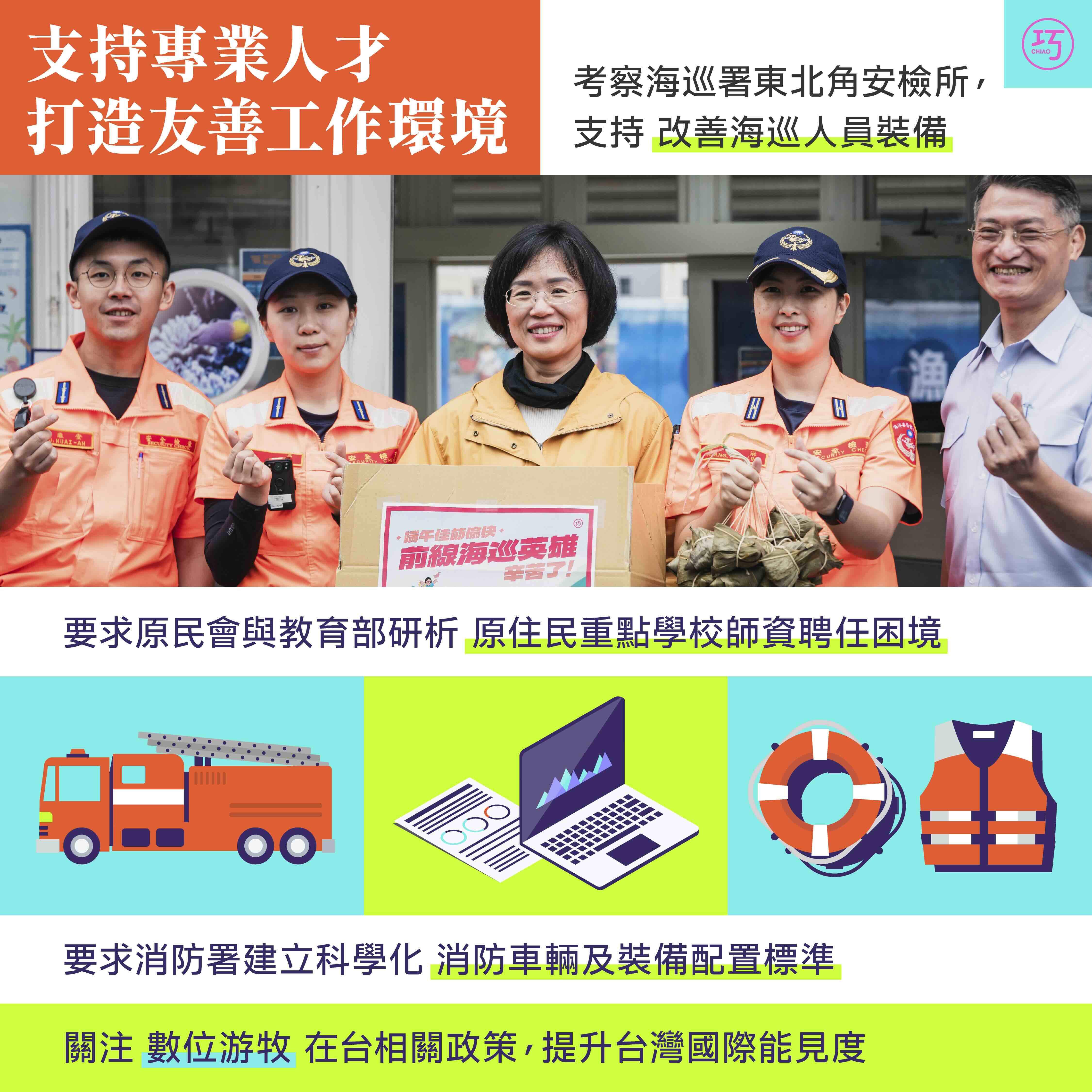 我參加內政委員會的考察,前往新北北海岸五處安檢所,關心海巡夥伴的工作狀況。除了瞭解現階段人力和資源仍需精進的地方,也親自來感謝每一位不分晝夜、堅守崗位的海巡英雄。我會繼續在內政委員會支持提升海巡能力的相關計劃,也很高興海巡預算能納入特別條例,一次補足經費,讓前線同仁能夠無後顧之憂地守衛國家海疆。