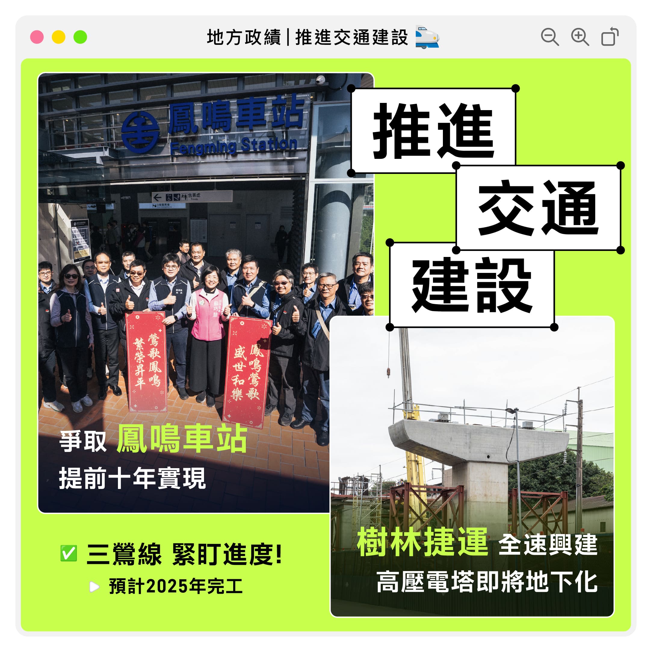 | 持續關心與監督捷運三鶯線2025年完工