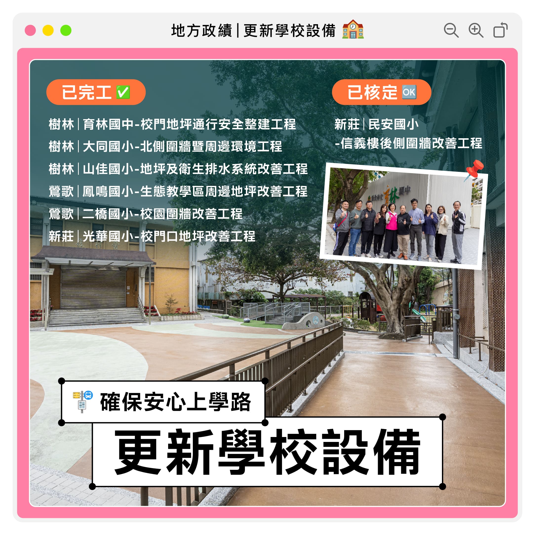 確保安心上學路!打造更優質、更安全的校園環境,讓孩子安心、家長放心。