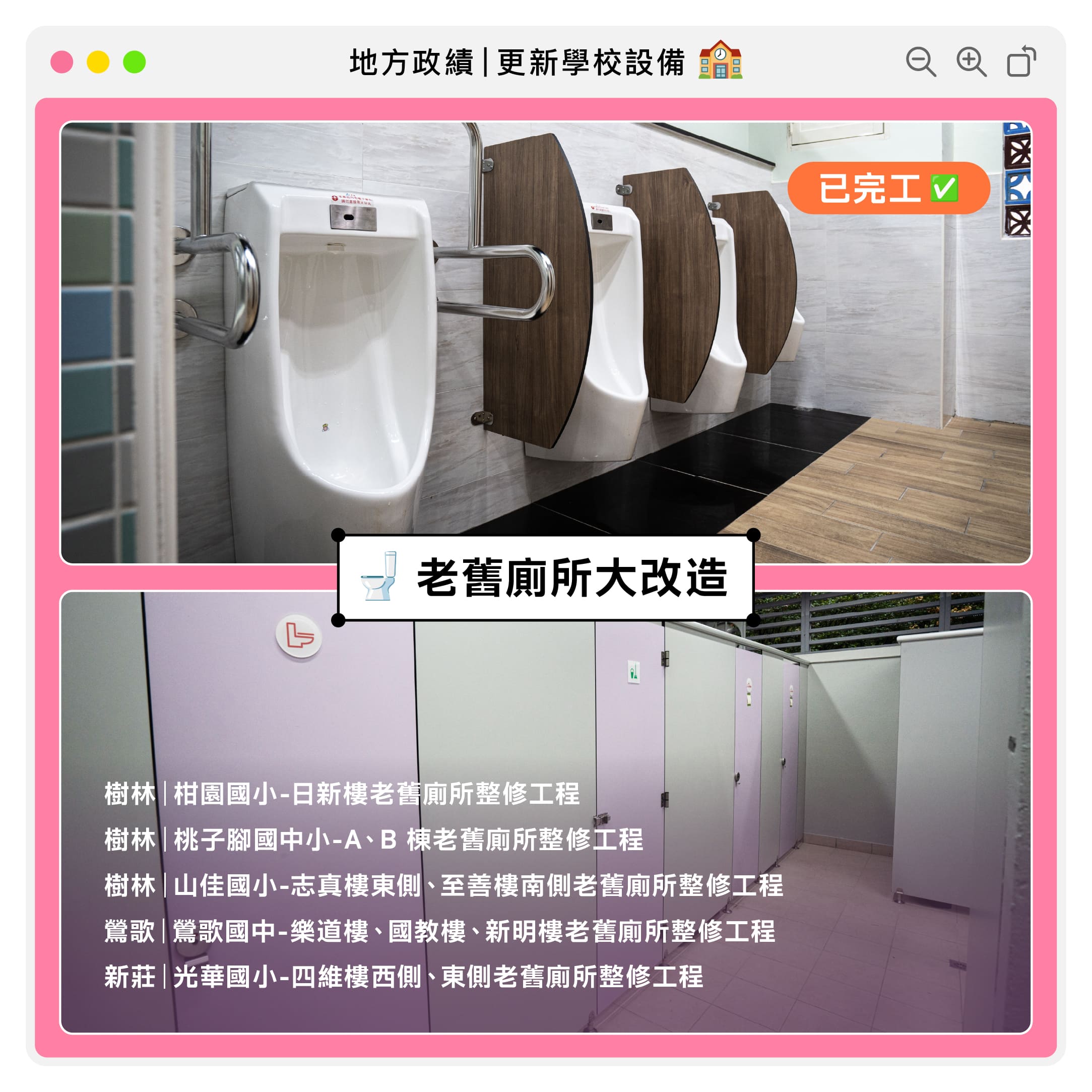 老舊廁所大改造!打造更優質、更安全的校園環境,讓孩子安心、家長放心。
