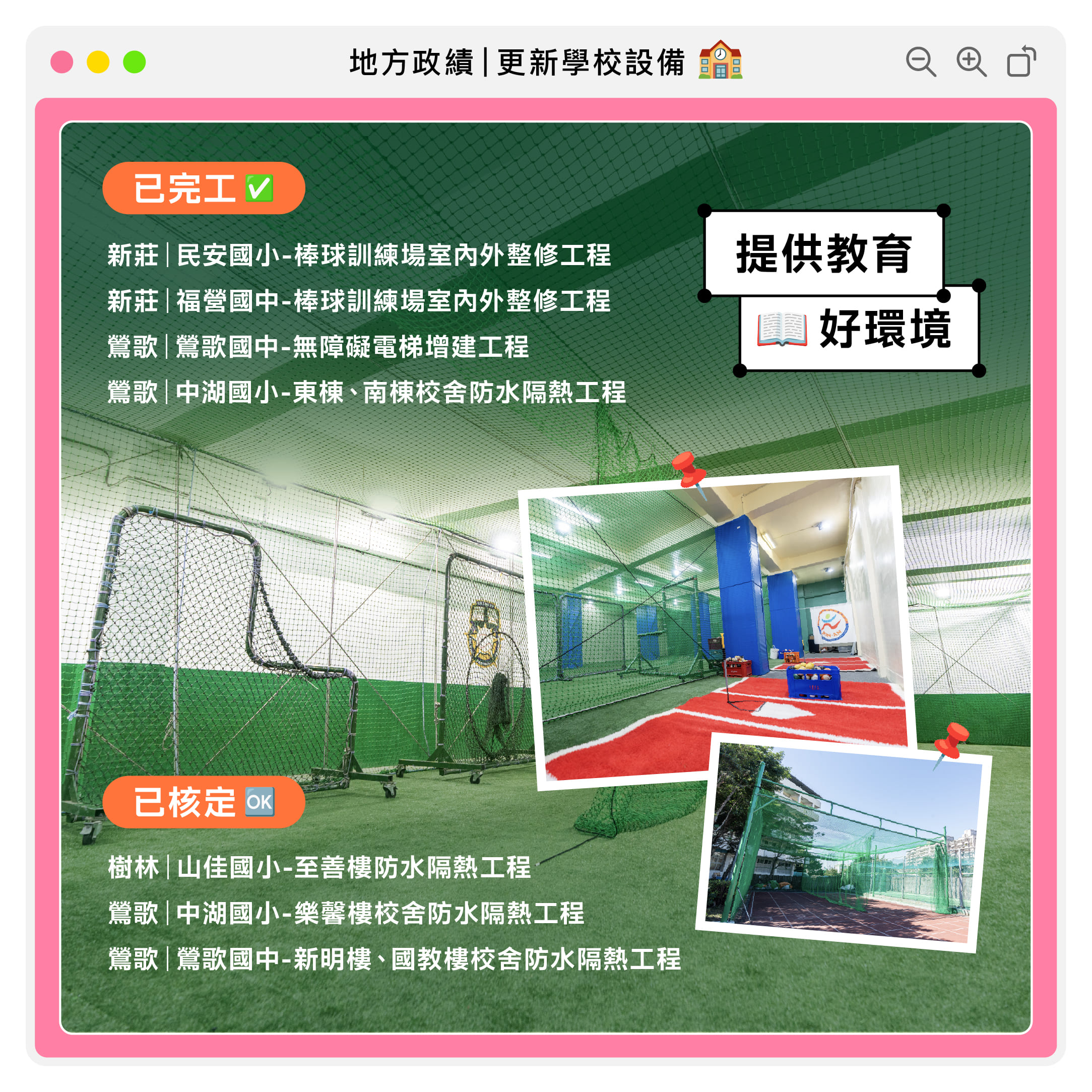 提供教育好環境!打造更優質、更安全的校園環境,讓孩子安心、家長放心。